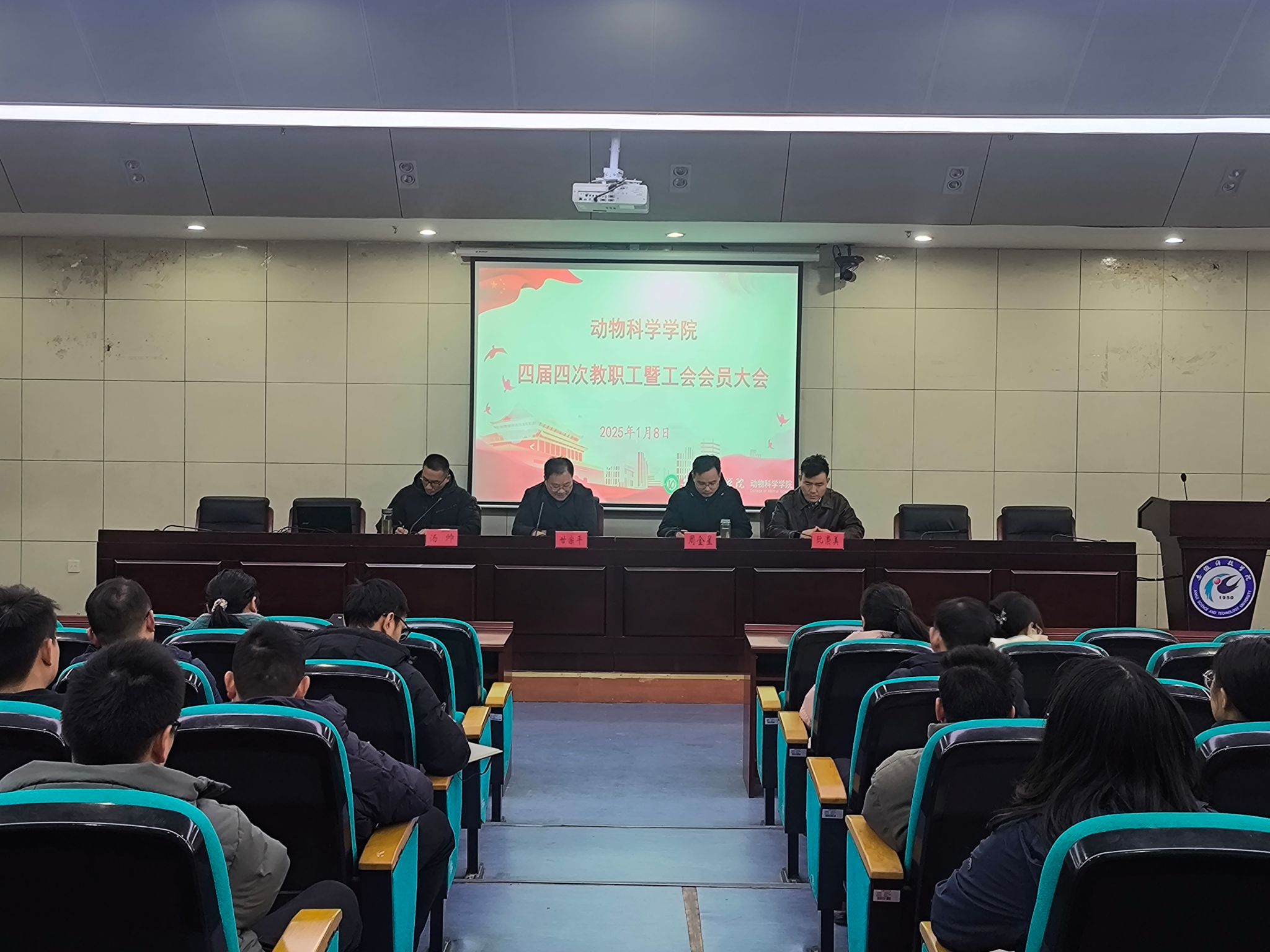 1月8日,动物科学学院在会议中心一楼报告厅召开学院四届四次教职工暨工会会员大会,学院党政班子成员及全体教职工参加会议,...