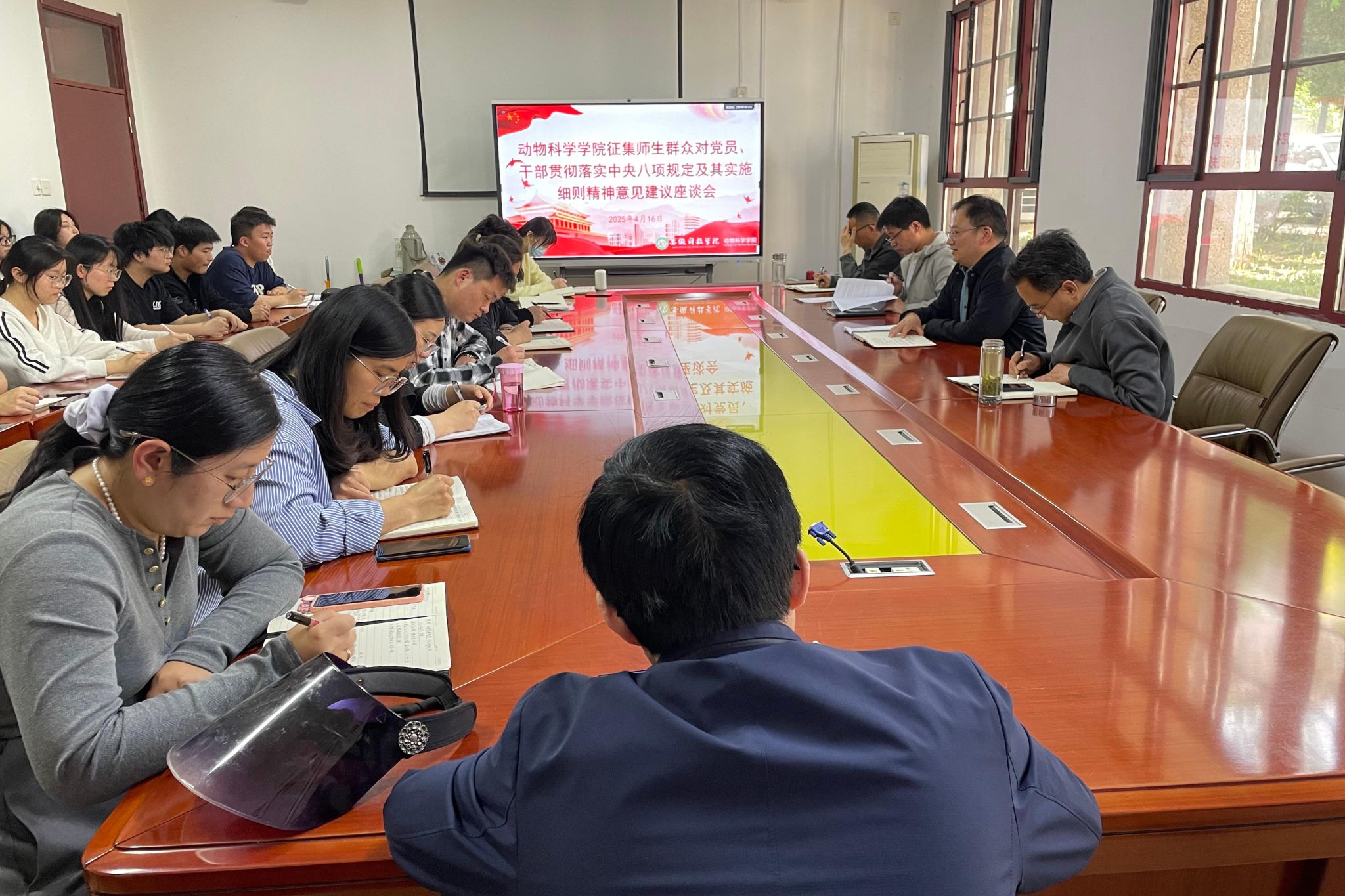 4月16日下午,动物科学学院在学院会议室举办征集师生群众对党员、干部贯彻落实中央八项规定及其实施细则精神意见建议座谈会,...