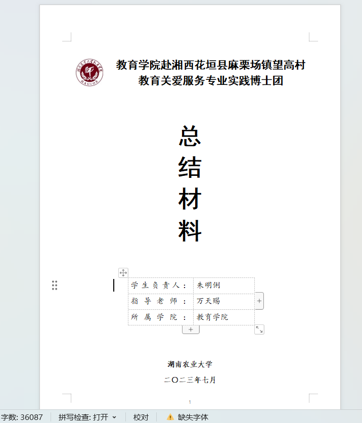 ④新闻稿4:教育学院“博士团”暑期三下乡实践感悟(湘农教育新闻稿:https://mp.weixin.qq.com/s/ 8gvWt1XroMrZIQ-lMpMRhg)