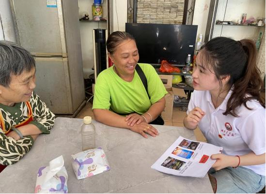 (图为学院研究生向当地村民宣讲党的惠民政策)